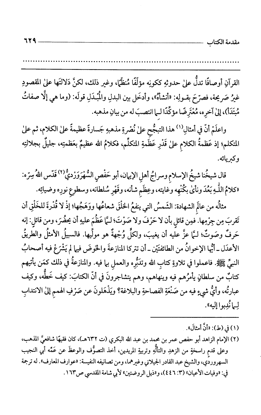 قال شيخنا شيخ الإسلام وسراج أهل الإيمان، أبو حفص السهروردي قدس الله سره: "كلام الله بعد ونأى بكنهه وغايته، وعظم شأنه، وقهر سلطانه، وسطوع نوره وضيائه.
