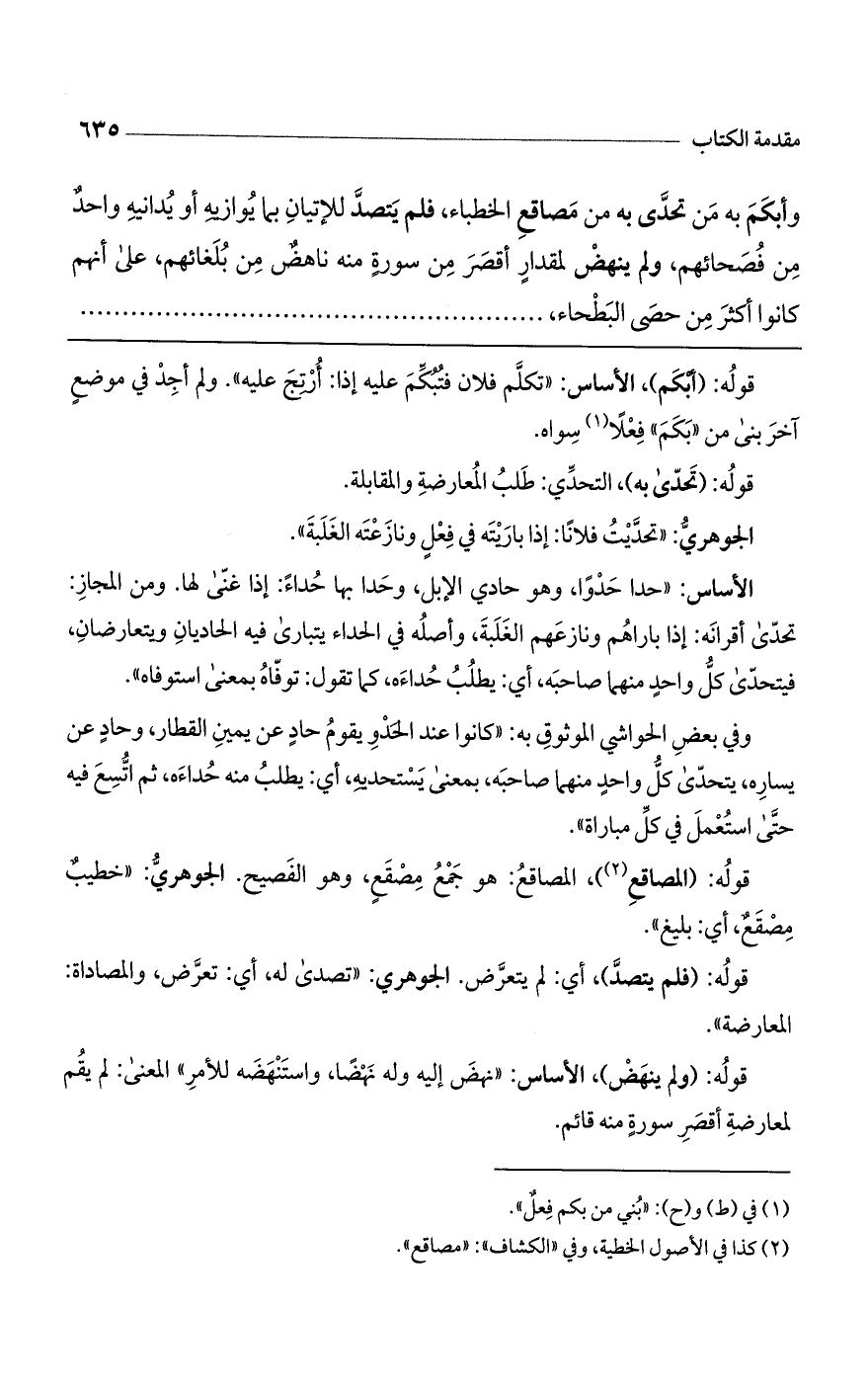 وأبكم به من تحدى به من مصاقع الخطباء، فلم يتصد للإتيان بما يوازيه أو يدانيه واحد من فصحائهم، ولم ينهض لمقدار أقصر من سورة منه ناهض من بلغائهم، على أنهم كانوا أكثر من حصى البطحاء،