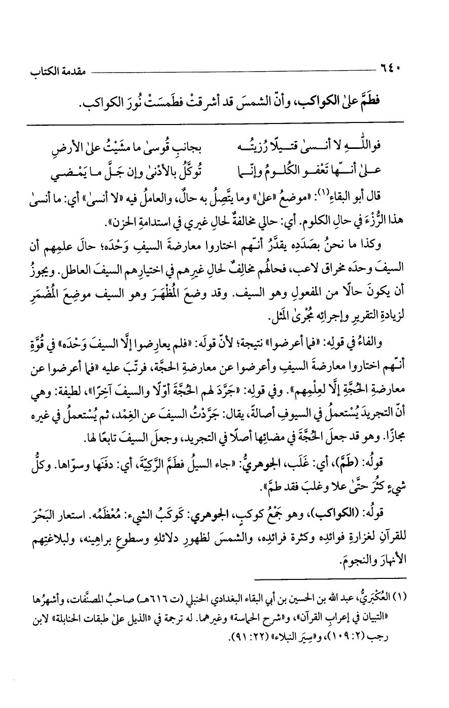 قوله: (الكواكب)، وهو جمع كوكب، الجوهري: كوكب الشيء: معظمه. استعار البحر للقرآن لغزارة فوائده وكثرة فرائده، والشمس لظهور دلائله وسطوع براهينه، ولبلاغتهم الأنهار والنجوم.