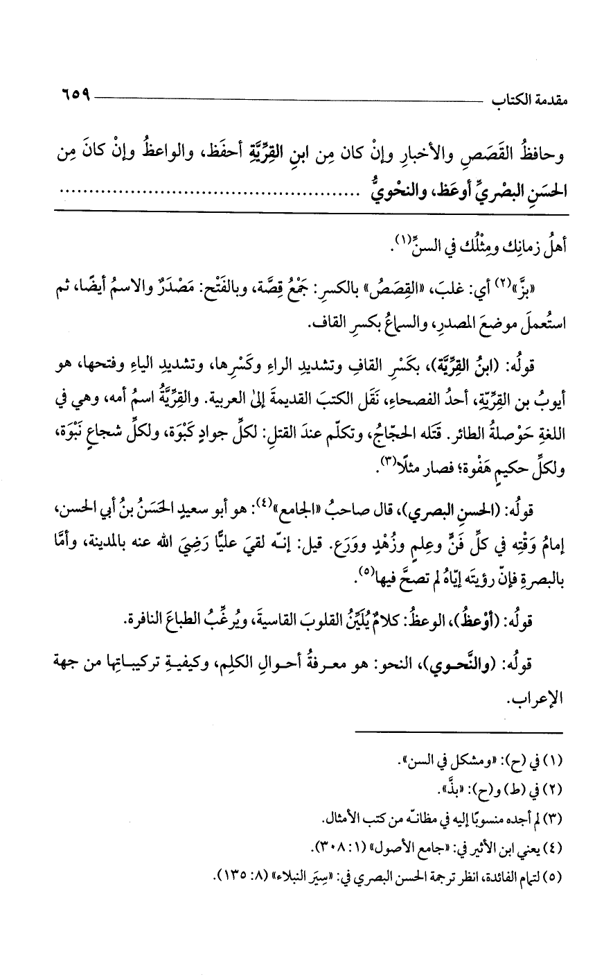 وحافظ القصص والأخبار وإن كان من ابن القرية أحفظ، والواعظ وإن كان من الحسن البصري أوعظ، والنحوي ....