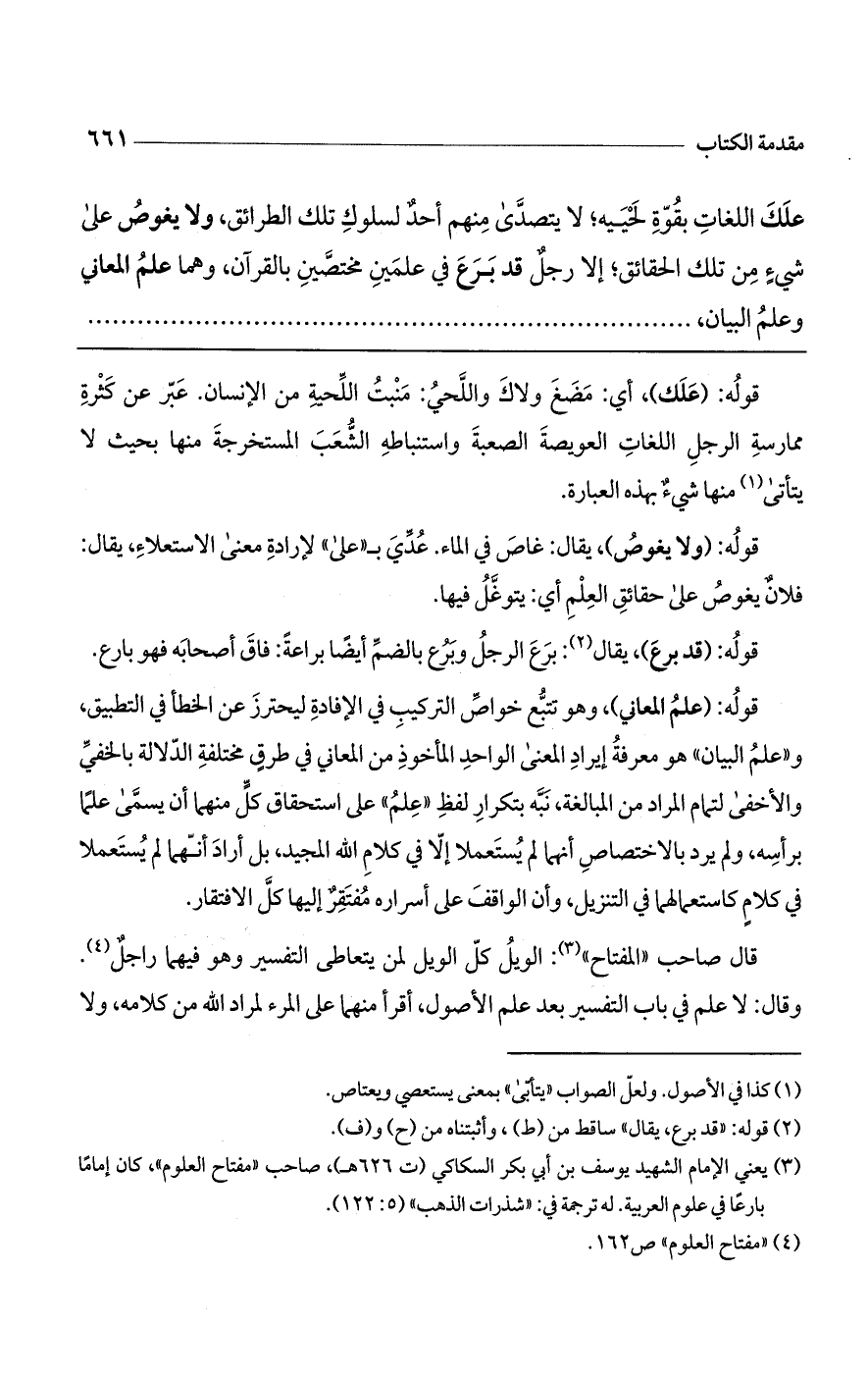 علك اللغات بقوة لحييه؛ لا يتصدى منهم أحد لسلوك تلك الطرائق، ولا يغوص على شيء من تلك الحقائق؛ إلا رجل قد برع في علمين مختصين بالقرآن، وهما علم المعاني وعلم البيان،
