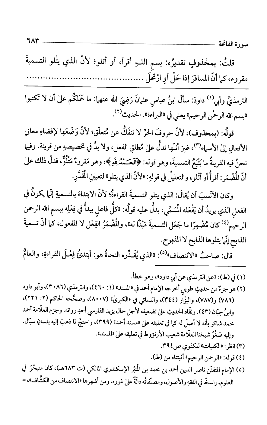 الترمذي وأبي داود: سأل ابن عباس عثمان رضي الله عنهما: ما حملكم على أن لا تكتبوا "بسم الله الرحمن الرحيم" يعني في "البراءة". الحديث.