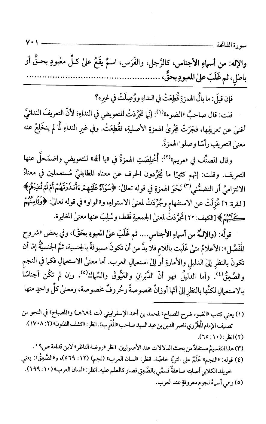قوله: (والإله من أسماء الأجناس ... ثم غلب على المعبود بحق)، وفي بعض "شروح المفصل": الأعلام متى غلبت باللام فلابد من أن تكون مسبوقة بالجنسية، ثم الجنسية إما أن تكون بالنظر إلى الدليل والأمارة أو إلى استعمال العرب. أما معنى الاستعمال فكما في النجم والصعق. وأما الدليل فهو أن الدبران والعيوق والسماك، وإن لم تكن أجناساً بالاستعمال لكنها بالنظر إلى أنها أوزان مخصوصة وحروف مخصوصة، ومعنى كل واحد منها