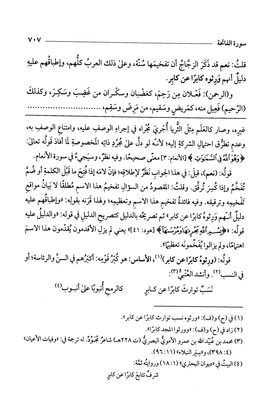 قوله: (ورثوه كابراً عن كابر)، الأساس: هو كبر قومه: أكبرهم في السن والرئاسة؛ أو في النسب. وأنشد العتبي: