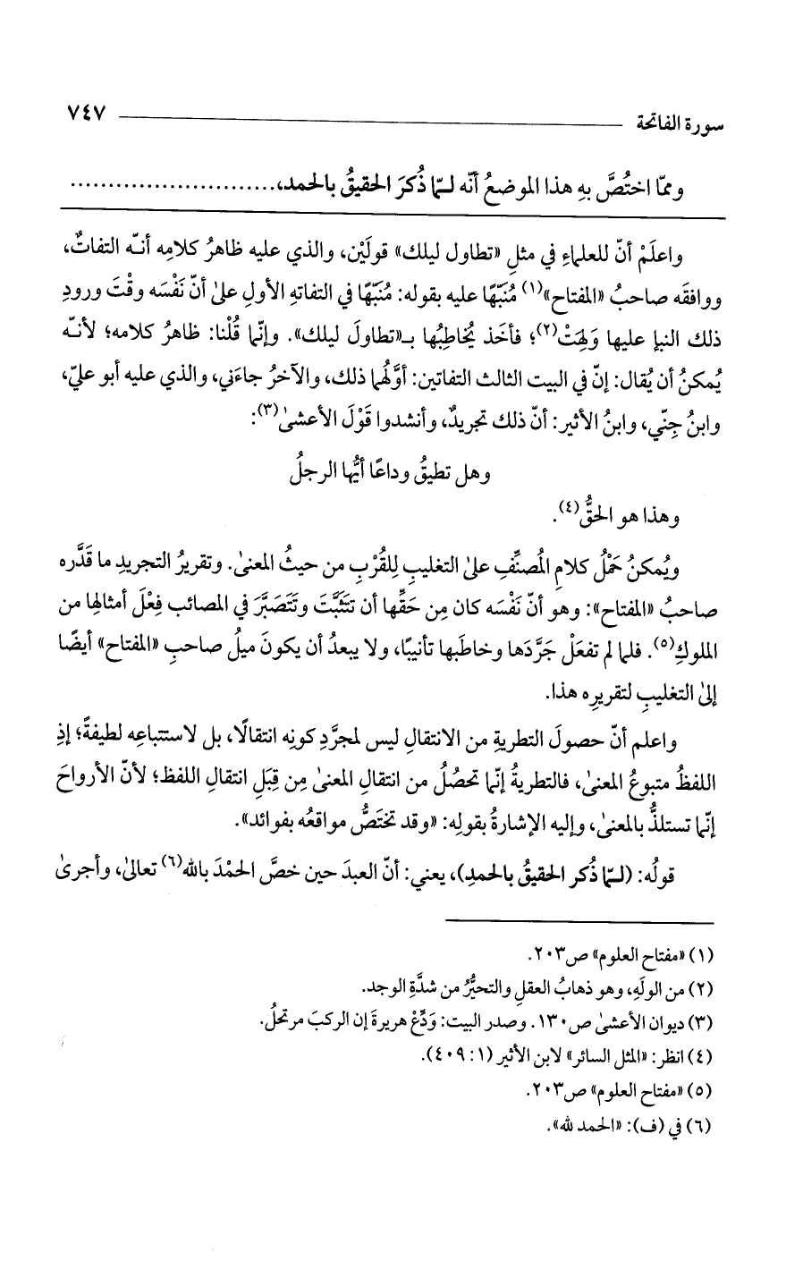 واعلم أن للعلماء في مثل "تطاول ليلك" قولين، والذي عليه ظاهر كلامه أنه التفات، ووافقه صاحب "المفتاح" منبهاً عليه بقوله: منبهاً في التفاته الأول على أن نفسه وقت ورود ذلك النبإ عليها ولهت؛ فأخذ يخاطبها بـ "تطاول ليلك". وإنما قلنا: ظاهر كلامه؛ لأنه يمكن أن يقال: إن في البيت الثالث التفاتين: أولهما ذلك، والآخر جاءني، والذي عليه أبو علي، وابن جني، وابن الأثير: أن ذلك تجريد، وأنشدوا قول الأعشى: