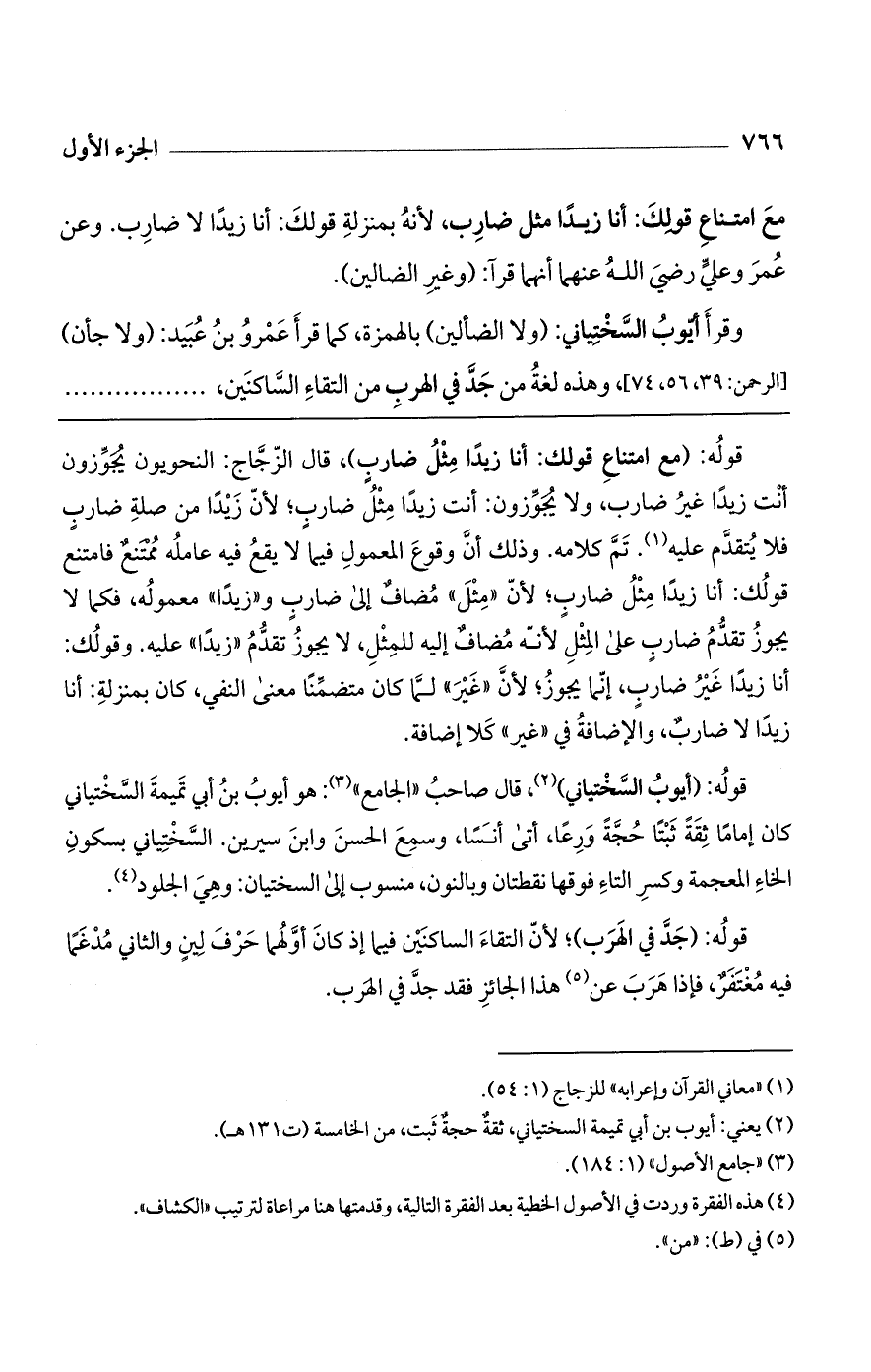 مع امتناع قولك: أنا زيداً مثل ضارب، لأنه بمنزلة قولك: أنا زيداً لا ضارب. وعن عمر وعلي رضي الله عنهما أنهما قرآ: (وغير الضالين).
