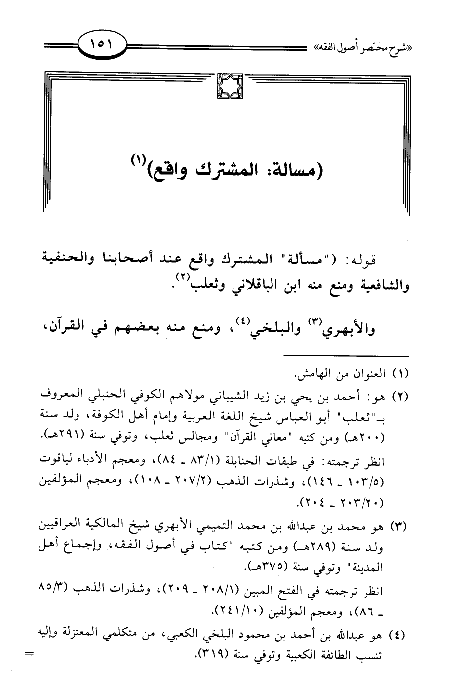 (¬3) هو محمد بن عبد الله بن محمد التميمي الأبهري شيخ المالكية العراقيين ولد سنة (289 هـ) ومن كتبه "كتاب في أصول الفقه، وإجماع أهل المدينة" وتوفي سنة (375 هـ).