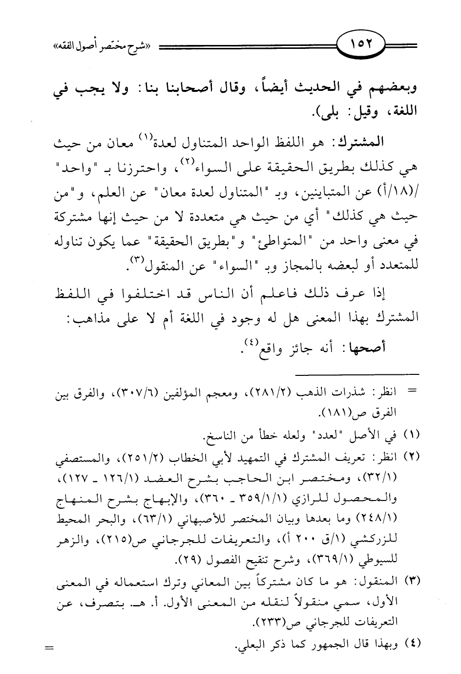 (¬2) انظر: تعريف المشترك في التمهيد لأبي الخطاب (2/ 251)، والمستصفي (1/ 32)، ومختصر ابن الحاجب بشرح العضد (1/ 126 - 127)، والمحصول للرازي (1/ 1/ 359 - 360)، والإبهاج بشرح المنهاج (1/ 248) وما بعدها وبيان المختصر للأصبهاني (1/ 63)، والبحر المحيط للزركشي (1/ ق 200 أ)، والتعريفات للجرجاني ص (215)، والزهر للسيوطي (1/ 369)، وشرح تنقيح الفصول (29).