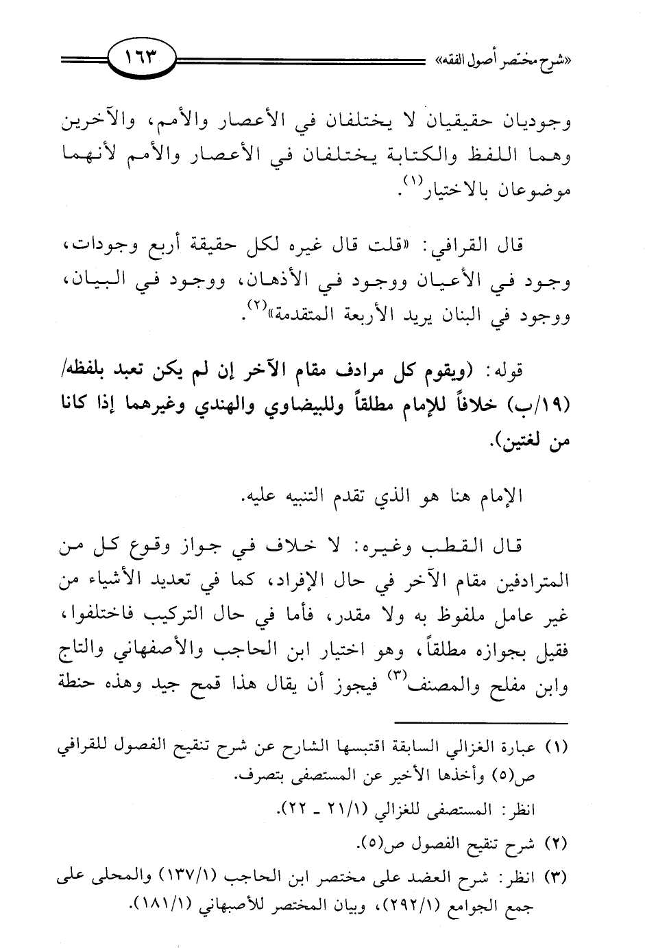 (¬3) انظر: شرح العضد على مختصر ابن الحاجب (1/ 137) والمحلى على جمع الجوامع (1/ 292)، وبيان المختصر للأصبهاني (1/ 181).