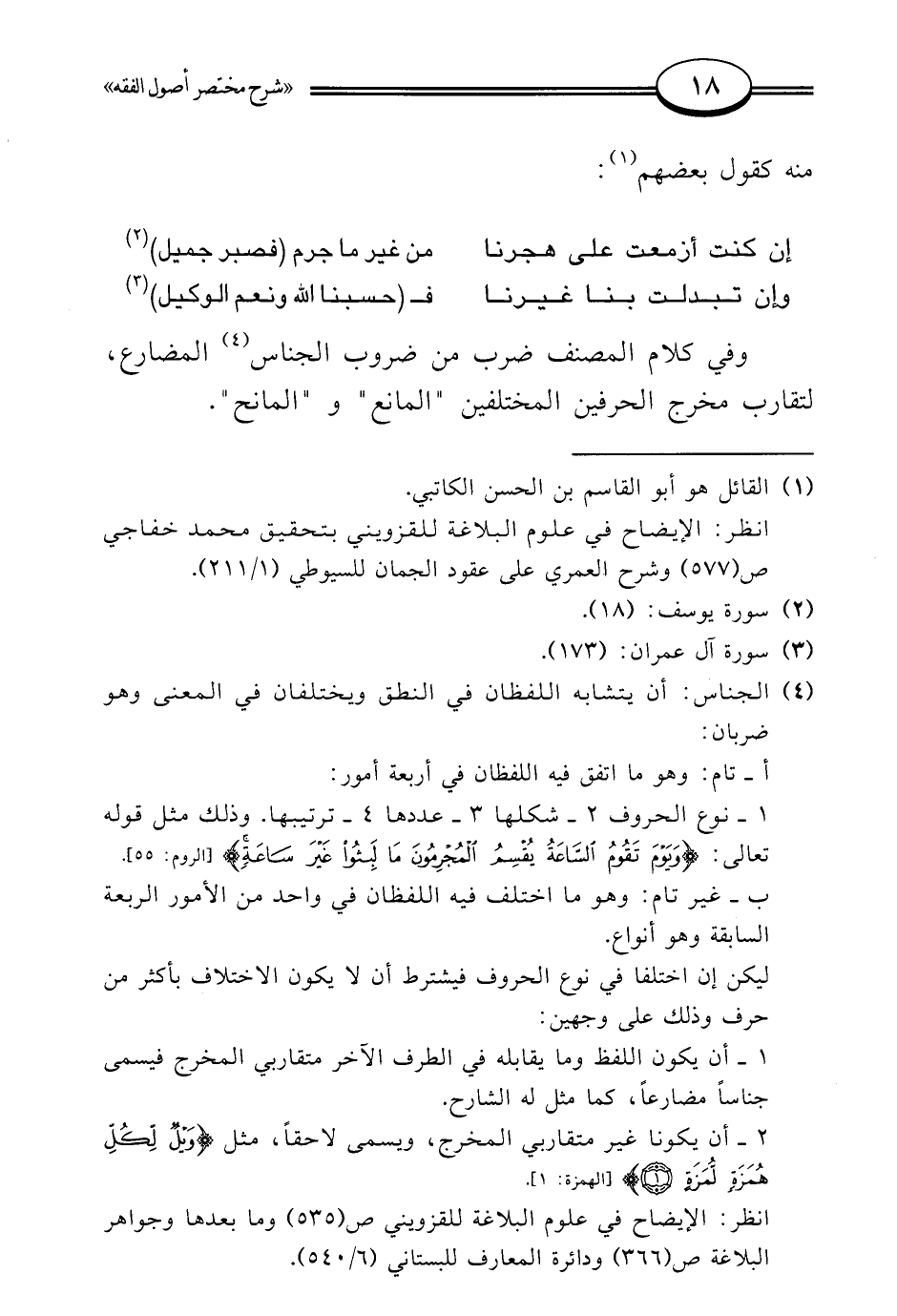 انظر: الإيضاح في علوم البلاغة للقزويني بتحقيق محمد خفاجي ص (577) وشرح العمري على عقود الجمان للسيوطي (1/ 211).