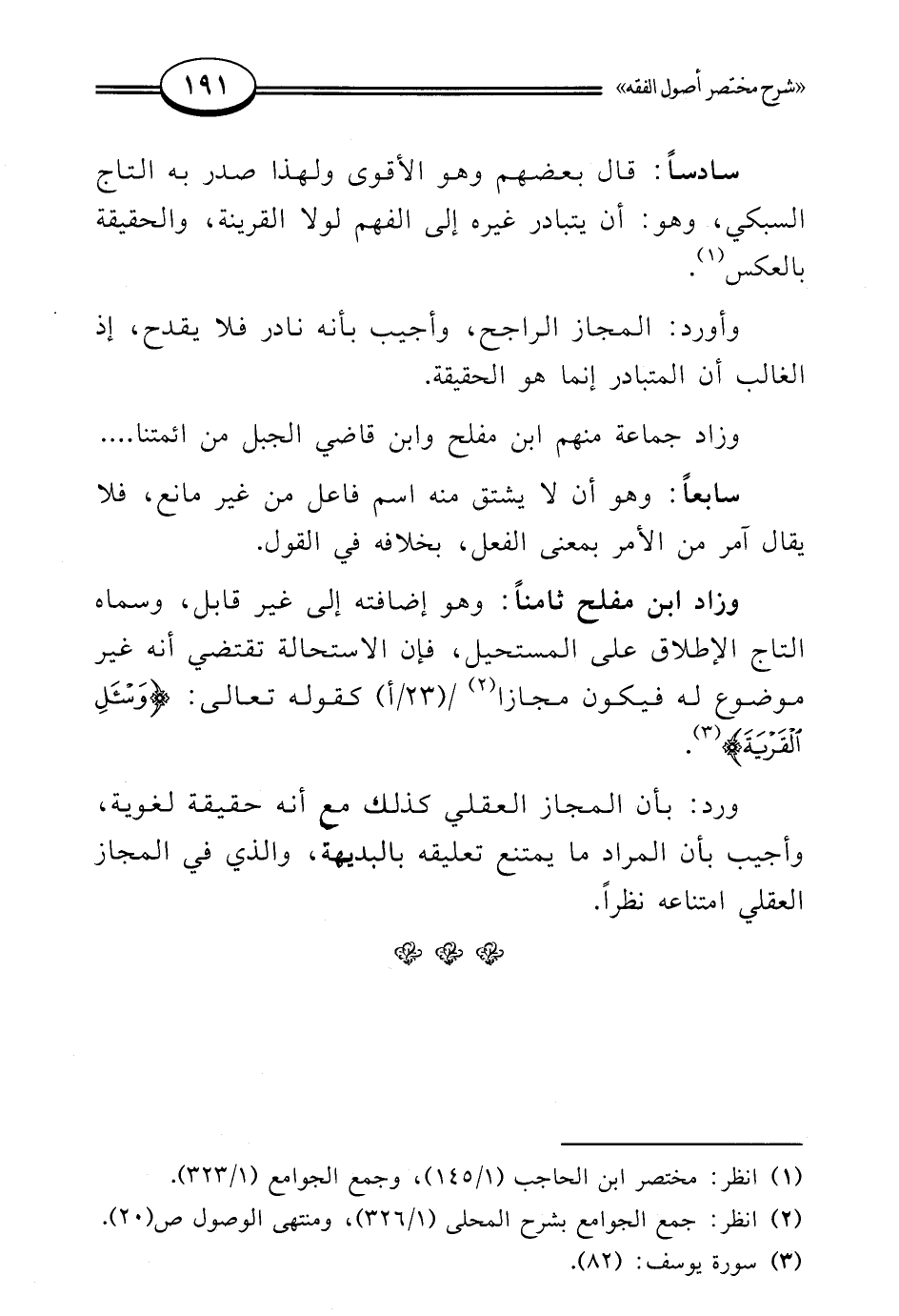 (¬1) انظر: مختصر ابن الحاجب (1/ 145)، وجمع الجوامع (1/ 323).