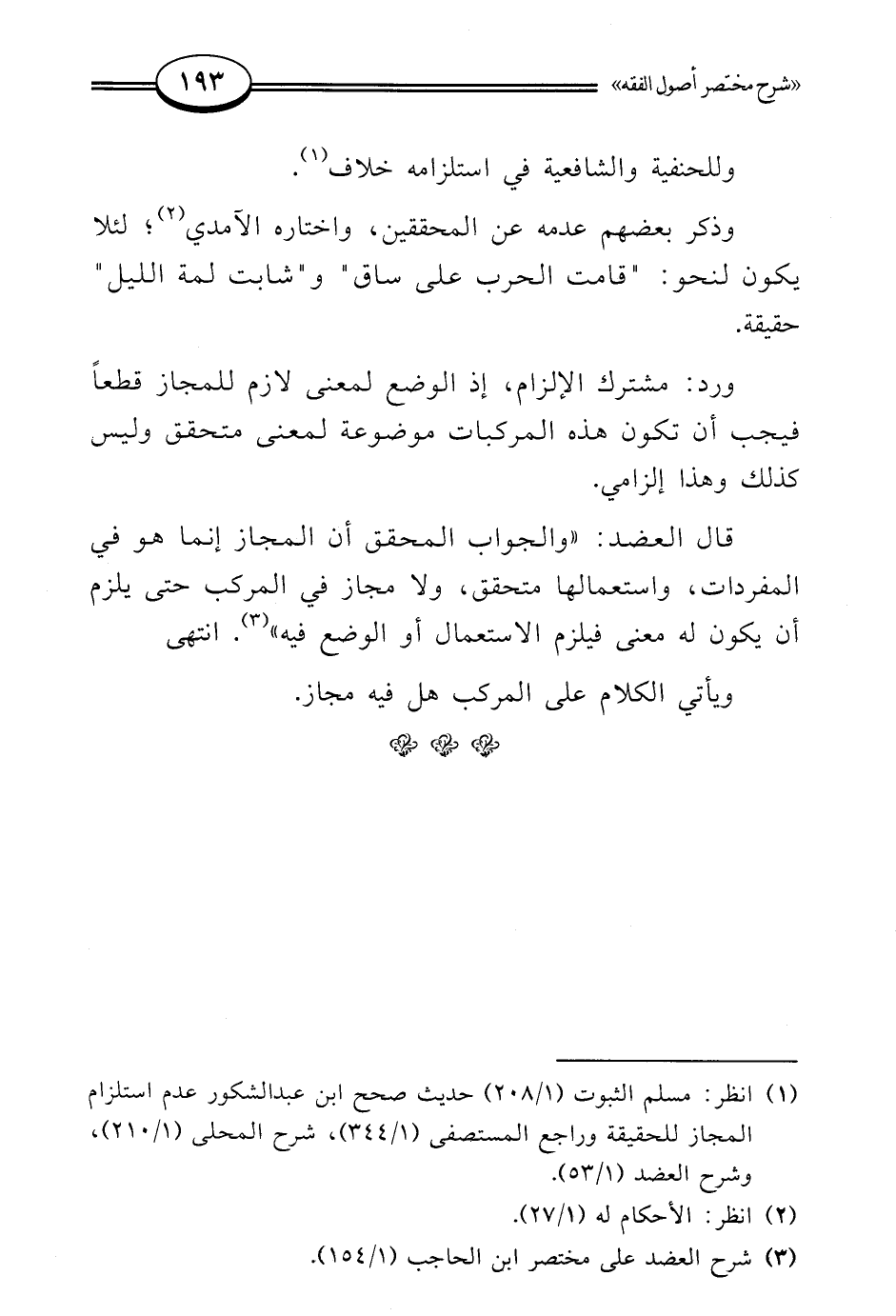 (¬3) شرح العضد على مختصر ابن الحاجب (1/ 154).