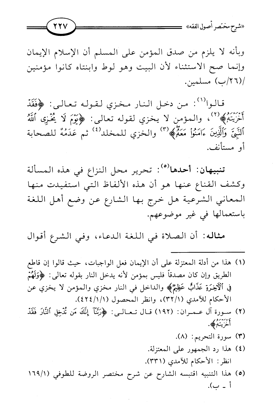 (¬5) هذا التنبيه اقتبسه الشارح عن شرح مختصر الروضة للطوفي (1/ 169 أ - ب).