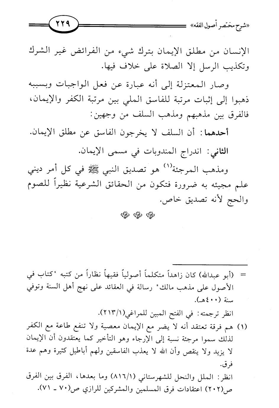 (¬1) هم فرقة تعتقد أنه لا يضر مع الإيمان معصية ولا تنفع طاعة مع الكفر لذلك سموا مرجئة نسبة إلى الإرجاء وهو التأخير كما يعتقدون أن الإيمان لا يزيد ولا ينقص وأن الله لا يعذب الفاسقين ولهم أباطيل كثيرة وهم عدة فرق.