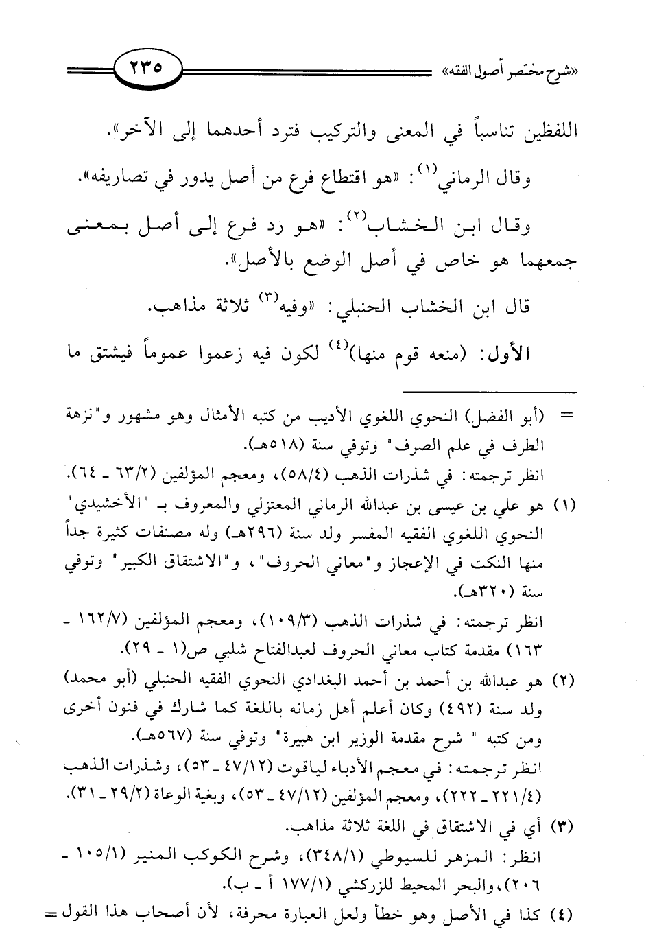 (¬3) أي في الاشتقاق في اللغة ثلاثة مذاهب.