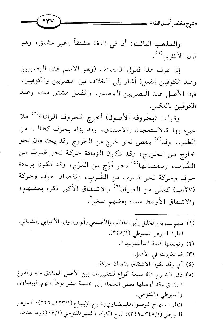 (¬5) ذكر الشارح -رحمه الله- سبعة أنواع للتغييرات بين الأصل المشتق منه والفرع المشتق وقد أوصلها بعض العلماء إلى خمسة عشر نوعًا منهم البيضاوي والسيوطي والفتوحي.