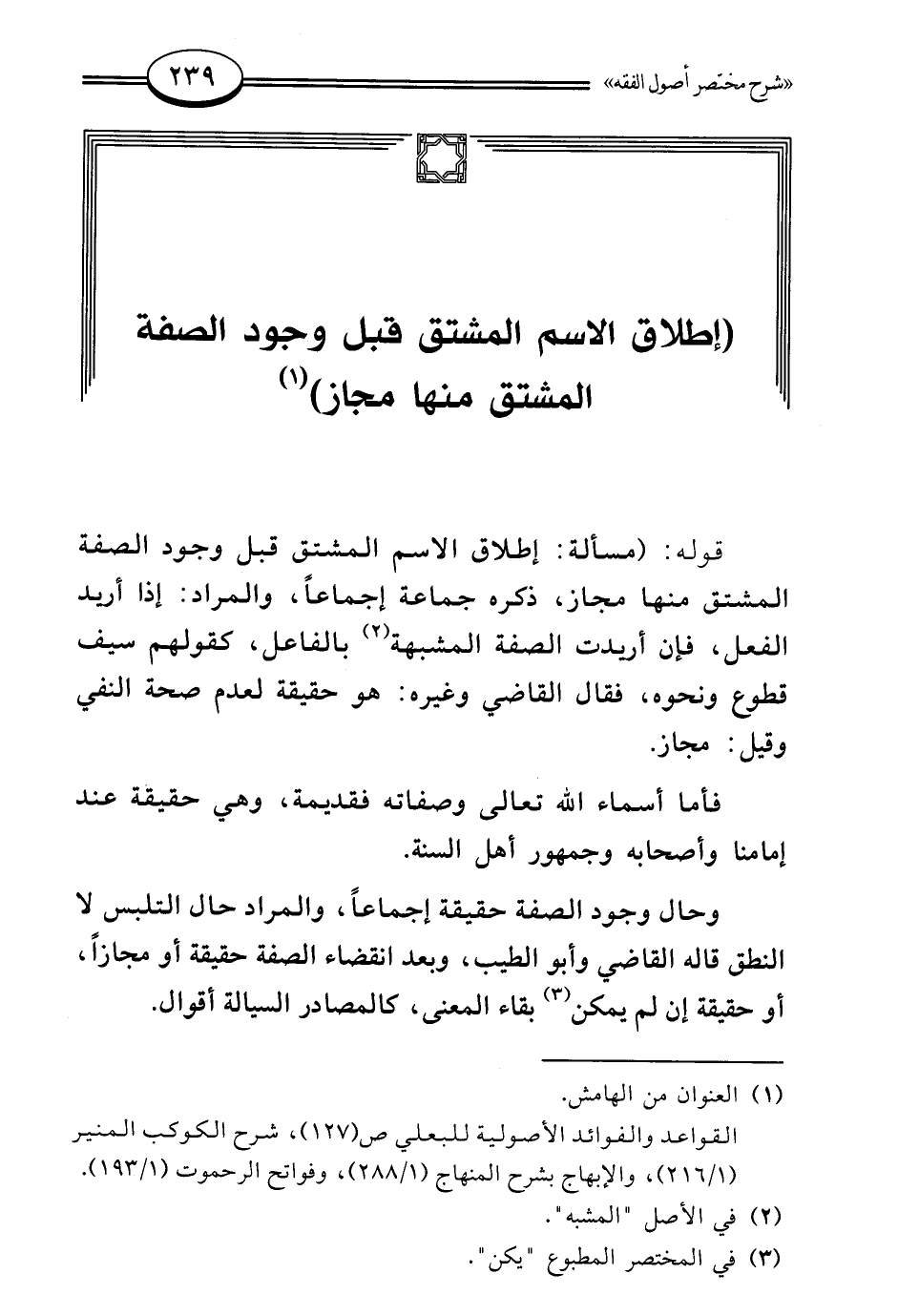 القواعد والفوائد الأصولية للبعلي ص (127)، شرح الكوكب المنير (1/ 216)، والإبهاج بشرح المنهاج (1/ 288)، وفواتح الرحموت (1/ 193).