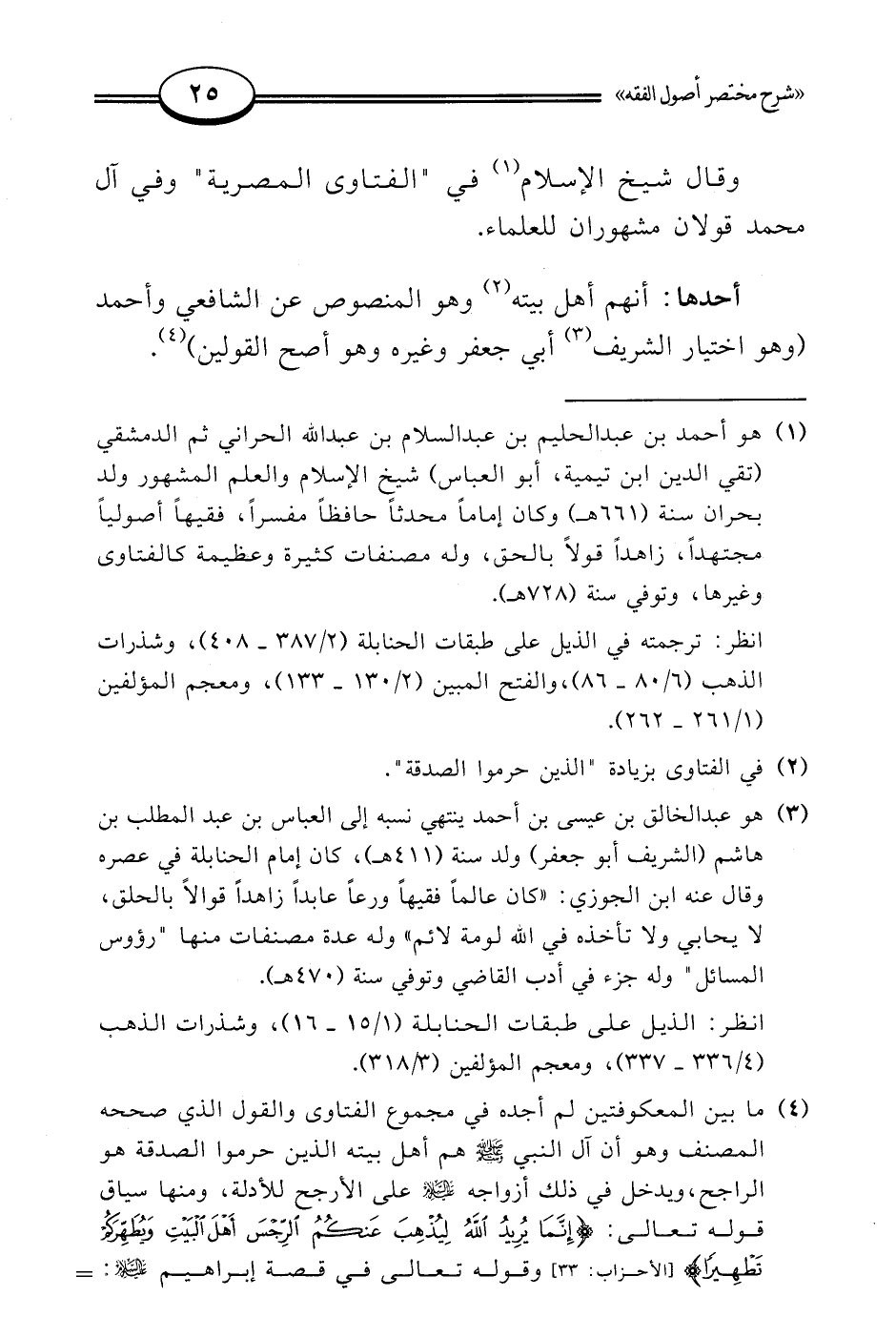 (¬1) هو أحمد بن عبد الحليم بن عبد السلام بن عبد الله الحراني ثم الدمشقي (تقي الدين بن تيمية، أبو العباس) شيخ الإسلام والعلم المشهور ولد بحران سنة (661 هـ) وكان إمامًا محدثًا حافظًا مفسرًا، فقيهًا أصوليًا مجتهدًا, زاهدًا قولًا بالحق، وله مصنفات كثيرة وعظيمة كالفتاوى وغيرها، وتوفي سنة (728 هـ).
