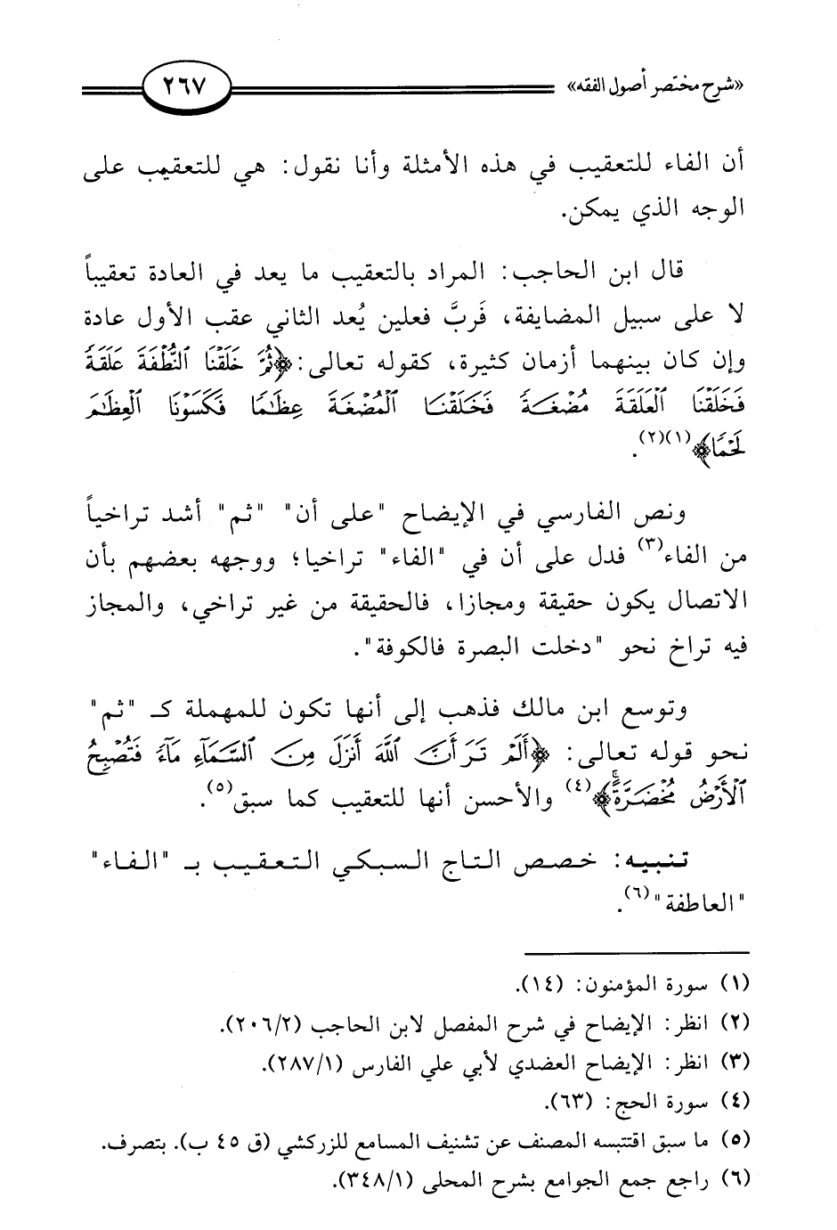 تنبيه: خصص التاج السبكي التعقيب بـ "الفاء" "العاطفة" (¬6).