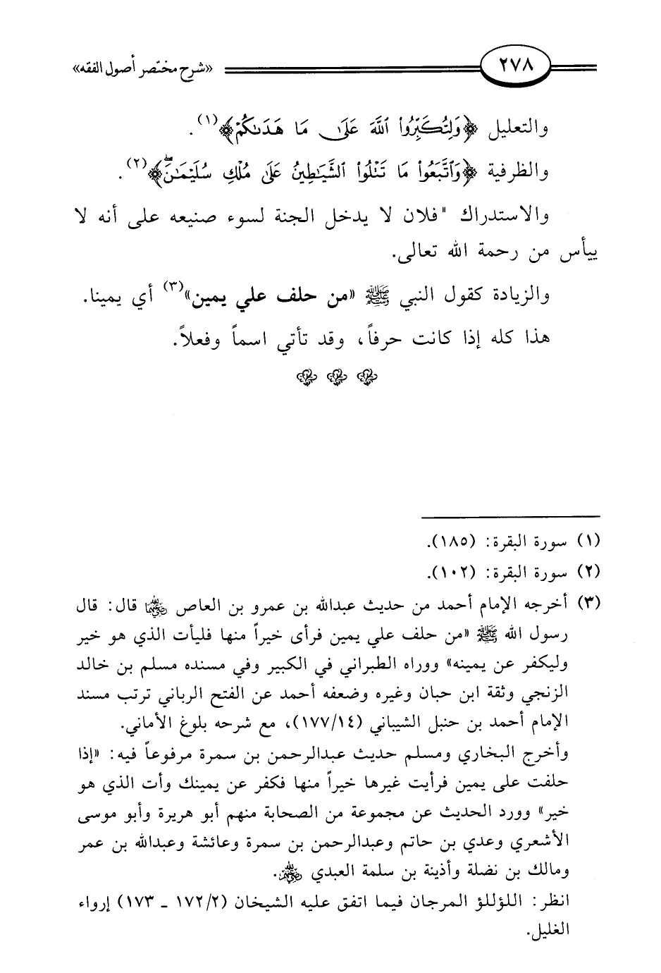 والتعليل {وَلِتُكَبِّرُوا اللَّهَ عَلَى مَا هَدَاكُمْ} (¬1).