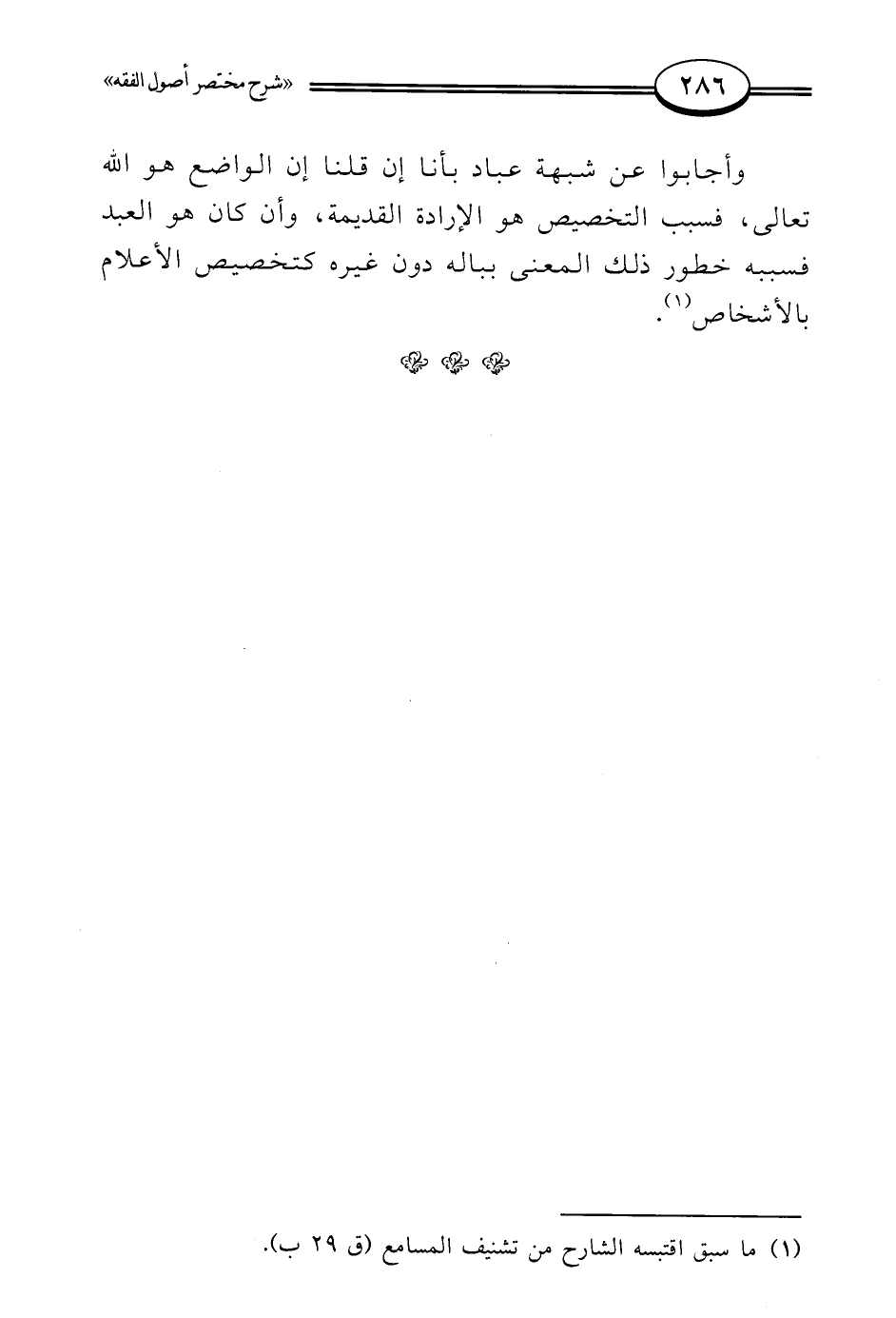 وأجابوا عن شبهة عباد بأنا إن قلنا إن الواضع هو الله تعالى، فسبب التخصيص هو الإرادة القديمة، وأن كان هو العبد فسببه خطور ذلك المعنى بباله دون غيره كتخصيص الأعلام بالأشخاص (¬1).