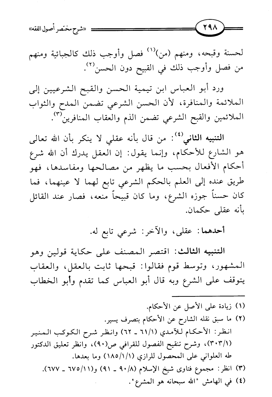 ورد أبو العباس ابن تيمية الحسن والقبح الشرعيين إلى الملائمة والمنافرة، لأن الحسن الشرعي تضمن المدح والثواب الملائمين والقبح الشرعي تضمن الذم والعقاب المنافرين (¬3).