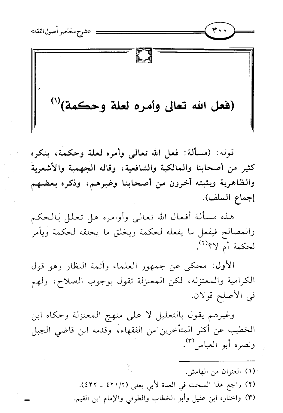 قوله: (مسألة: فعل الله تعالى وأمره لعلة وحكمة، ينكره كثير من أصحابنا والمالكية والشافعية، وقاله الجهمية والأشعرية والظاهرية ويثبته آخرون من أصحابنا وغيرهم، وذكره بعضهم إجماع السلف).