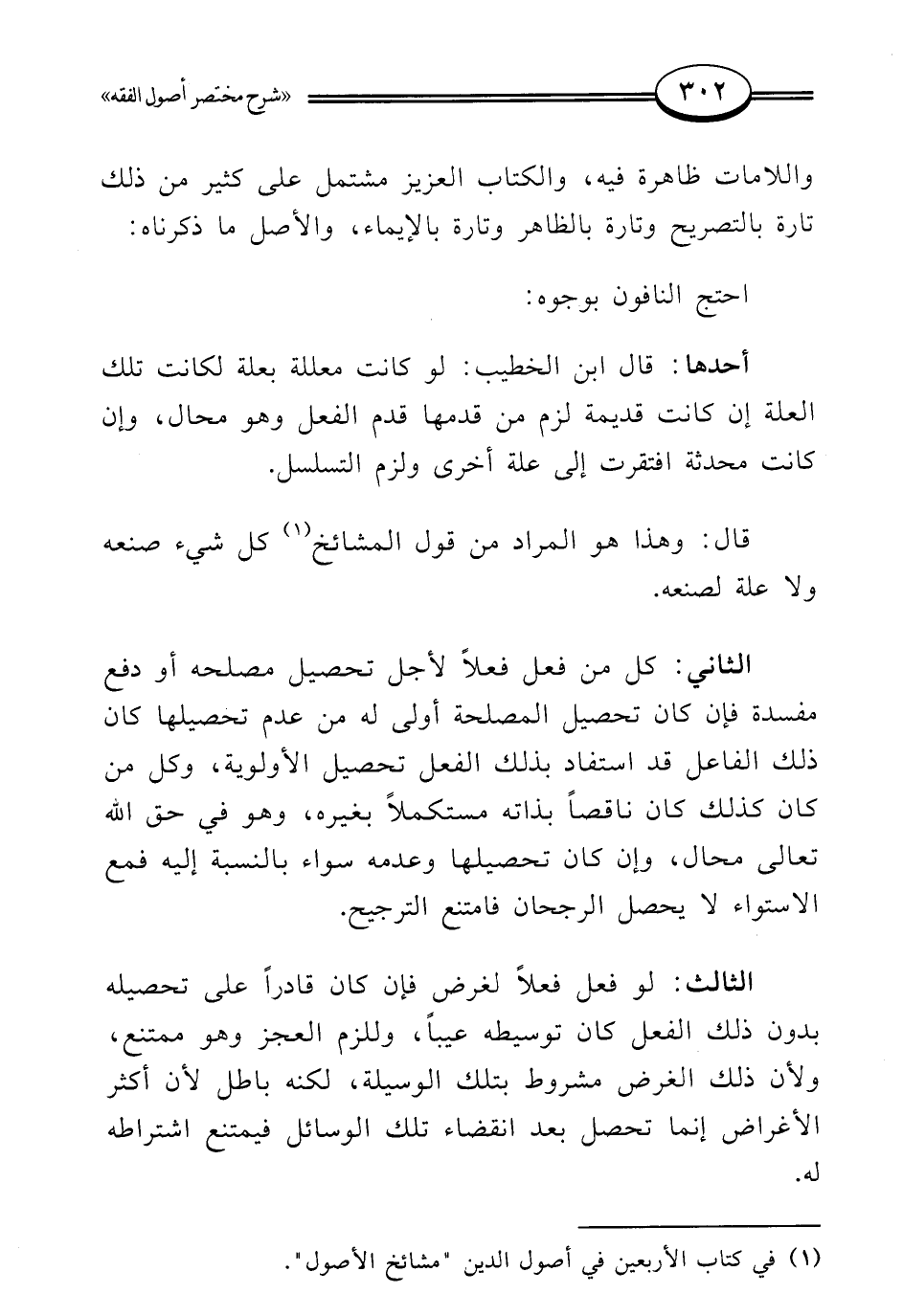 الثاني: كل من فعل فعلًا لأجل تحصيل مصلحه أو دفع مفسدة فإن كان تحصيل المصلحة أولى له من عدم تحصيلها كان ذلك الفاعل قد استفاد بذلك الفعل تحصيل الأولوية، وكل من كان كذلك كان ناقصًا بذاته مستكملًا بغيره، وهو في حق الله تعالى محال، وإن كان تحصيلها وعدمه سواء بالنسبة إليه فمع الاستواء لا يحصل الرجحان فامتنع الترجيح.