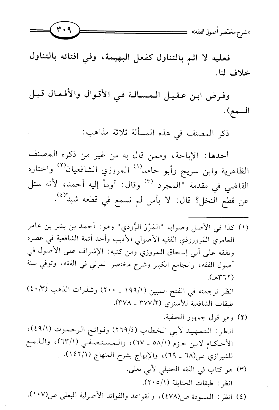 (¬4) انظر: المسودة ص (478)، والقواعد والفوائد الأصولية للبعلى ص (107).