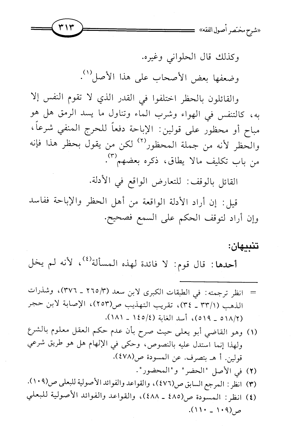 (¬4) انظر: المسودة ص (485 - 488)، والقواعد والفوائد الأصولية للبعلي ص (109 - 110).