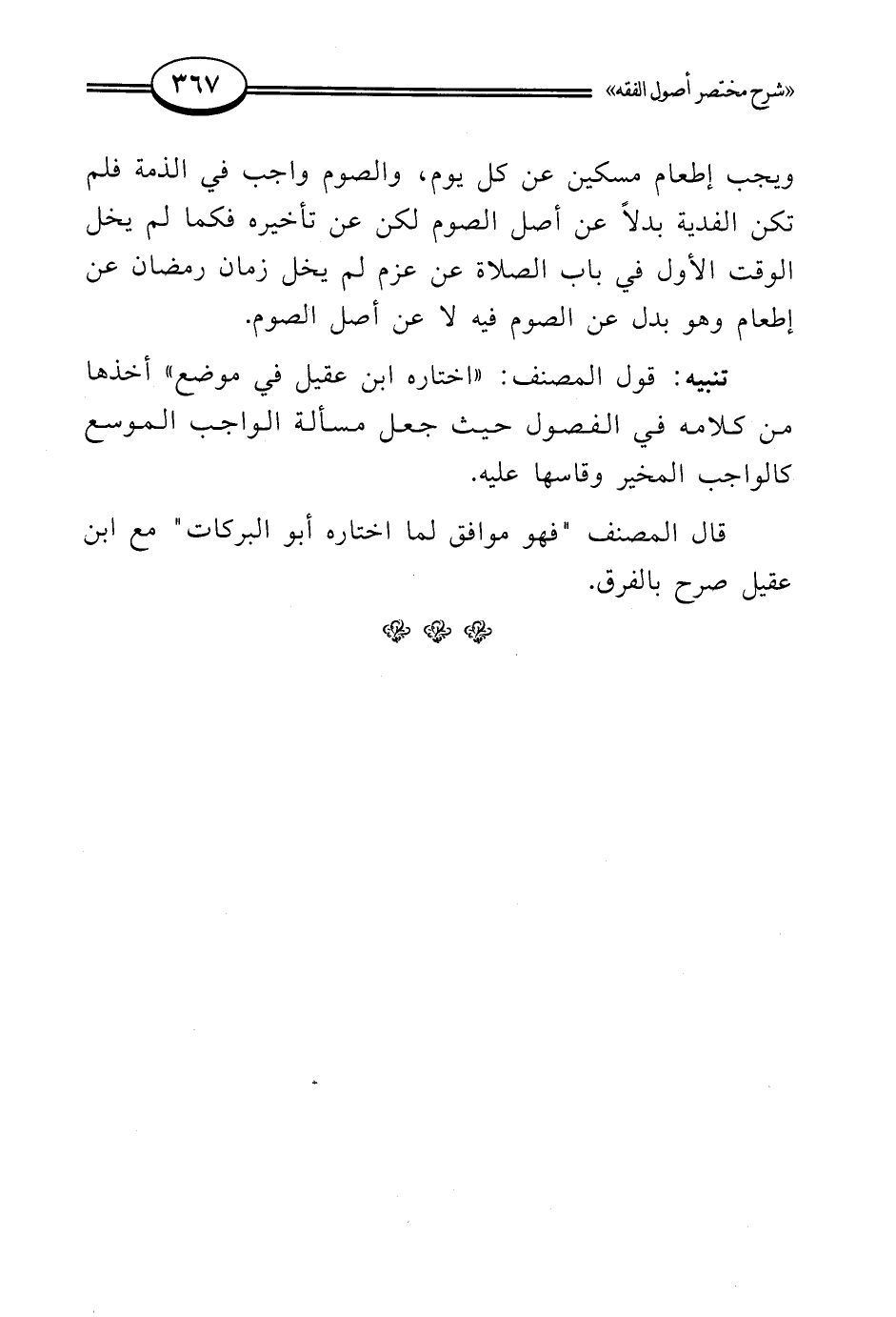 تنبيه: قول المصنف: "اختاره ابن عقيل في موضع" أخذها من كلامه في الفصول حيث جعل مسألة الواجب الموسع كالواجب المخير وقاسها عليه.