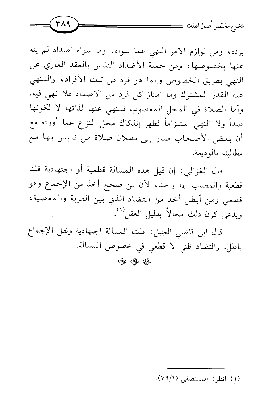قال ابن قاضي الجبل: قلت المسألة اجتهادية ونقل الإجماع باطل. والتضاد ظني لا قطعي في خصوص المسألة.