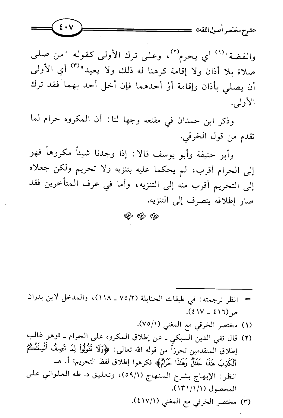 (¬2) قال تقي الدين السبكي -عن إطلاق المكروه على الحرام- "وهو غالب إطلاق المتقدمين تحرزًا من قوله الله تعالى: {وَلَا تَقُولُوا لِمَا تَصِفُ أَلْسِنَتُكُمُ الْكَذِبَ هَذَا حَلَالٌ وَهَذَا حَرَامٌ} فكرهوا إطلاق لفظ التحريم" أ. هـ.
