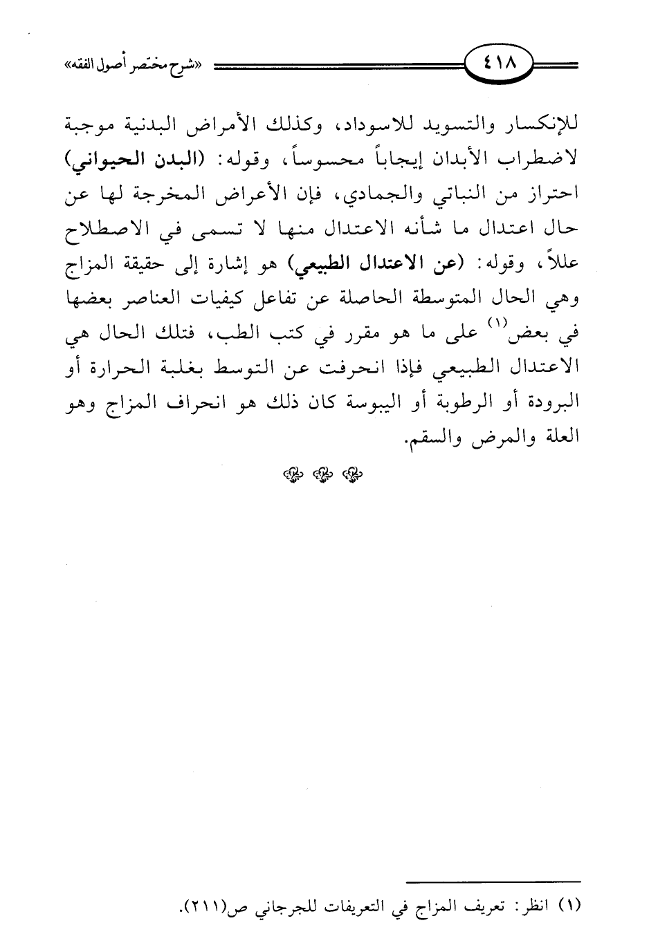 (¬1) انظر: تعريف المزاج في التعريفات للجرجاني ص (211).