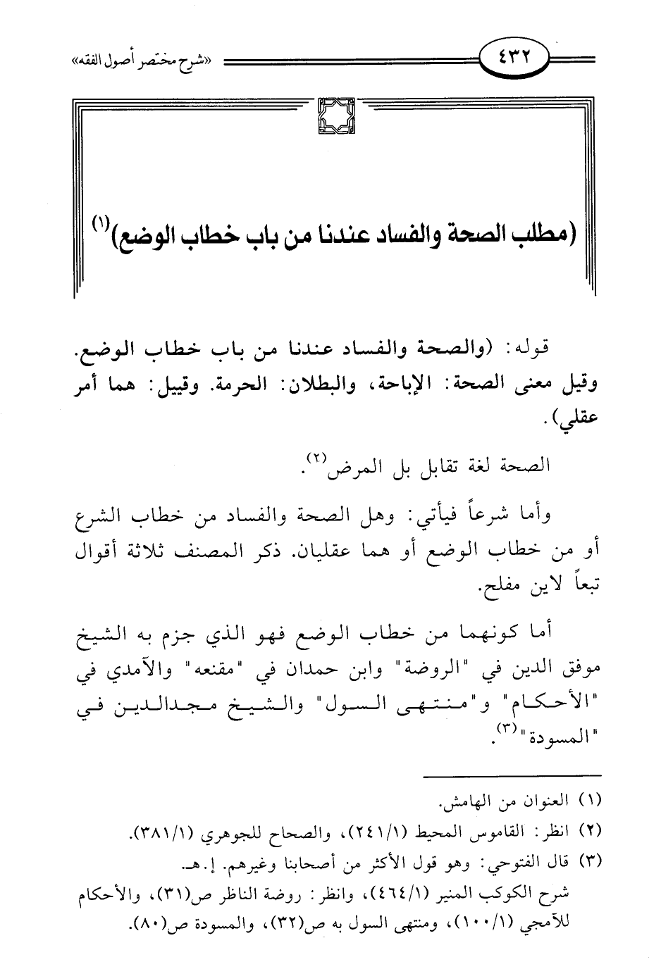 شرح الكوكب المنير (1/ 464)، وانظر: روضة الناظر ص (31)، والأحكام للآمدي (1/ 100)، ومنتهى السول به ص (32)، والمسودة ص (80).