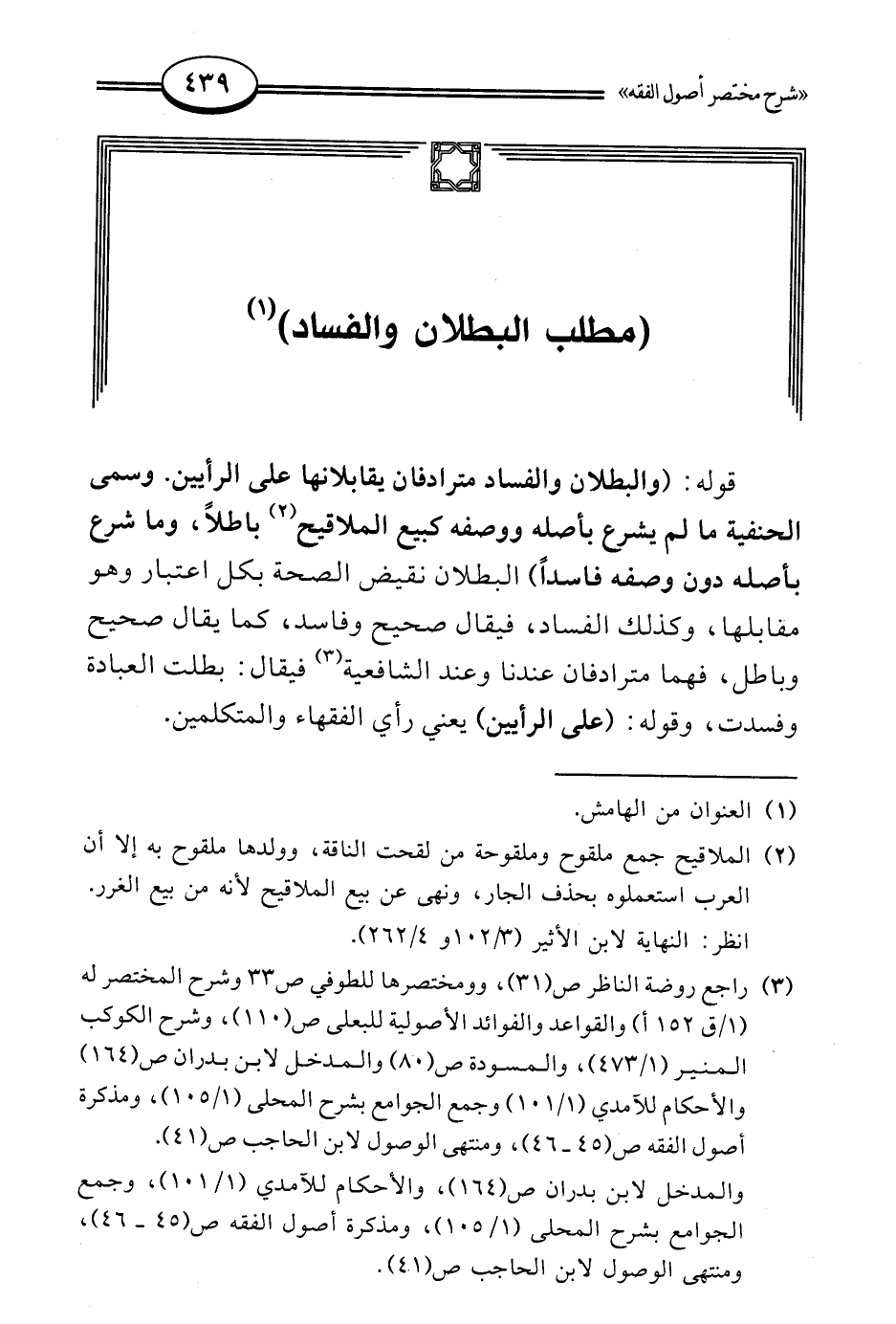 قوله: (والبطلان والفساد مترادفان يقابلانها على الرأيين. وسمى الحنفية ما لم يشرع بأصله ووصفه كبيع الملاقيح (¬2) باطلًا، وما شرع بأصله دون وصفه فاسدًا) البطلان نقيض الصحة بكل اعتبار وهو مقابلها، وكذلك الفساد، فيقال صحيح وفاسد، كما يقال صحيح وباطل، فهما مترادفان عندنا وعند الشافعية (¬3) فيقال: بطلت العبادة وفسدت، وقوله: (على الرأيين) يعني رأي الفقهاء والمتكلمين.