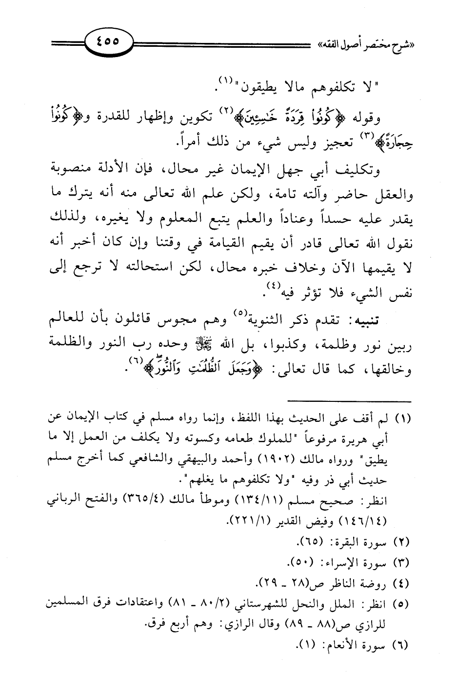 تنبيه: تقدم ذكر الثنوية (¬5) وهم مجوس قائلون بأن للعالم ربين نور وظلمة، وكذبوا، بل الله سبحانه وتعالى وحده رب النور والظلمة وخالقها، كما قال تعالى: {وَجَعَلَ الظُّلُمَاتِ وَالنُّورَ} (¬6).