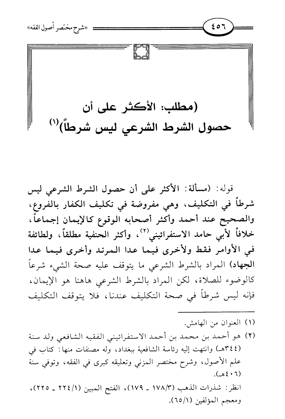 (¬2) هو أحمد بن محمد بن أحمد الاستفرائيني الفقيه الشافعي ولد سنة (344 هـ) وانتهت إليه رئاسة الشافعية ببغداد، وله مصنفات منها: كتاب في علم الأصول، وشرح مختصر المزني وتعليقه كبرى في الفقه، وتوفي سنة (406 هـ).