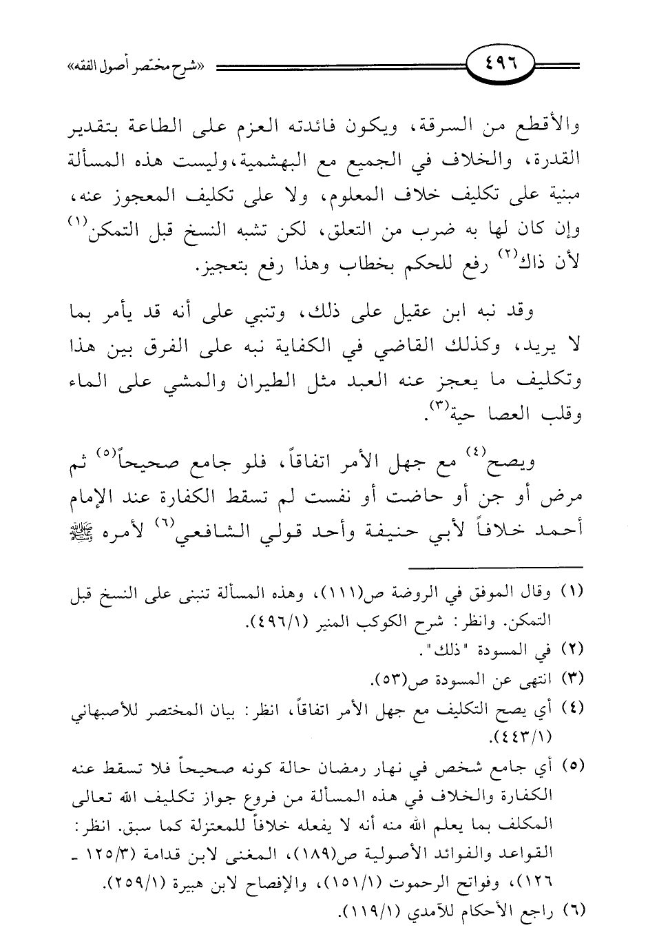 (¬1) وقال الموفق في الروضة ص (111)، وهذه المسألة تنبني على النسخ قبل التمكن. وانظر: شرح الكوكب المنير (1/ 496).