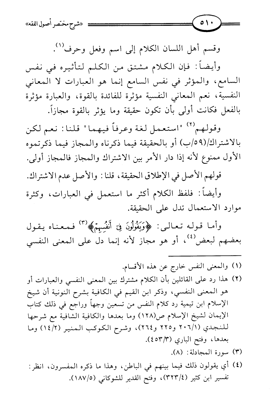 (¬2) هذا رد على القائلين بأن الكلام مشترك بين المعنى النفسي والعبارات أو هو المعنى النفسي، وذكر ابن القيم في الكافية بشرح النونية أن شيخ الإسلام ابن تيمية رد كلام النفس من تسعين وجهًا وراجع في ذلك كتاب الإيمان لشيخ الإسلام ص (128) وما بعدها والكافية الشافية مع شرحها للنجدي (1/ 206 و 225 و 264)، وشرح الكوكب المنير (2/ 14) وما بعدها، وفتح الباري (3/ 453).