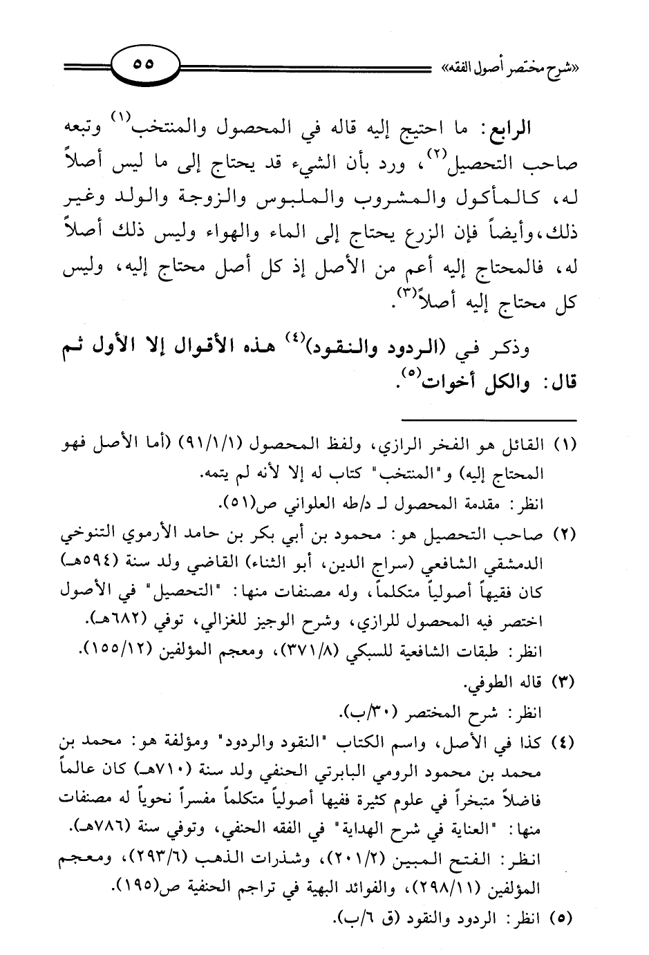(¬2) صاحب التحصيل هو: محمود بن أبي بكر بن حامد الأرموي التنوخي الدمشقي الشافعي (سراج الدين، أبو الثناء) القاضي ولد سنة (594 هـ) كان فقيهًا أصوليًا متكلمًا، وله مصنفات منها: "التحصيل" في الأصول اختصر فيه المحصول للرازي، وشرح الوجيز للغزالي، توفي (682 هـ).