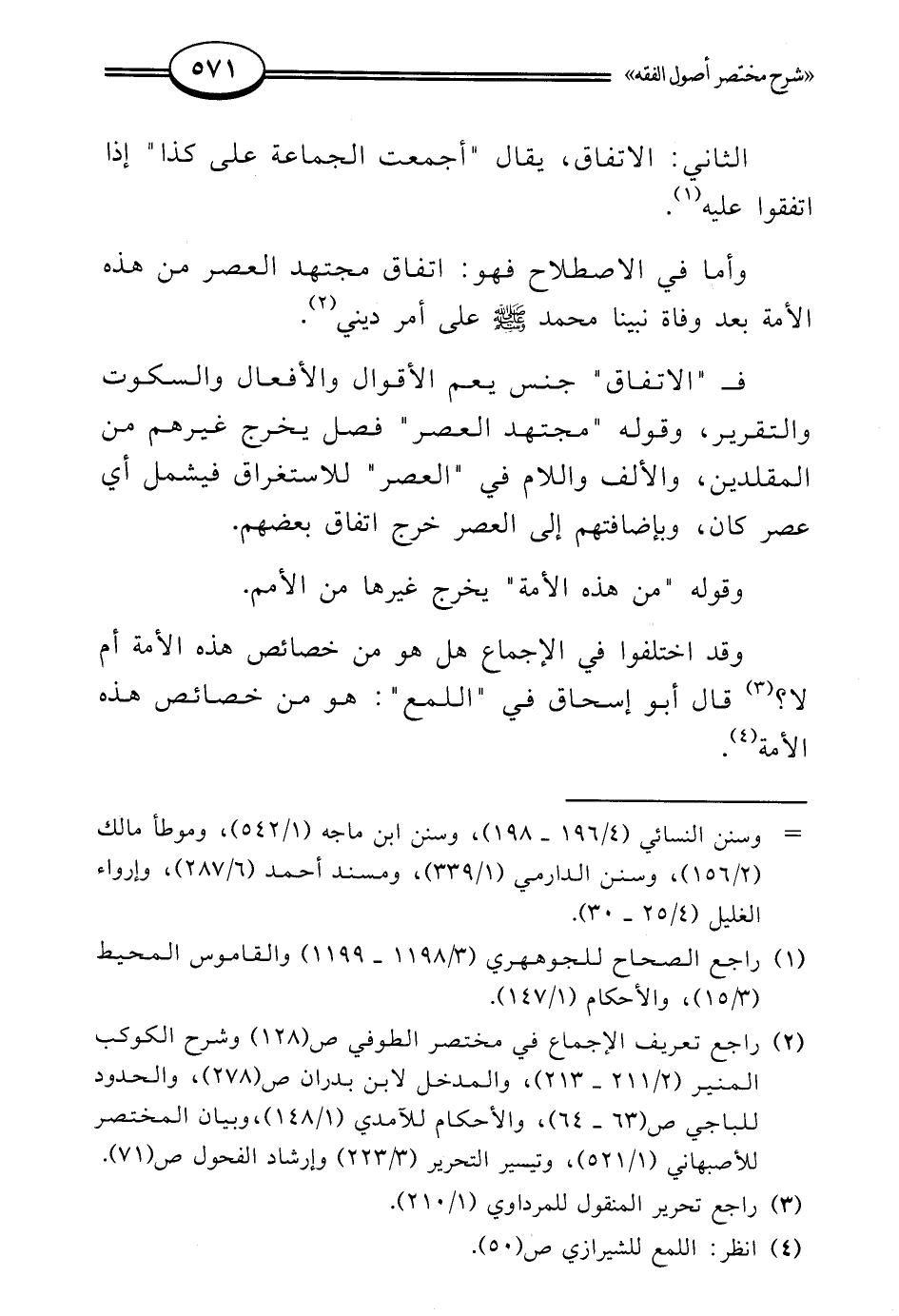 (¬2) راجع تعريف الإجماع في مختصر الطوفي ص (128) وشرح الكوكب المنير (2/ 211 - 213)، والمدخل لابن بدران ص (278)، والحدود للباجي ص (63 - 64)، والأحكام للآمدي (1/ 148)، وبيان المختصر للأصبهاني (1/ 521)، وتيسير التحرير (223/ 3) وإرشاد الفحول ص (71).