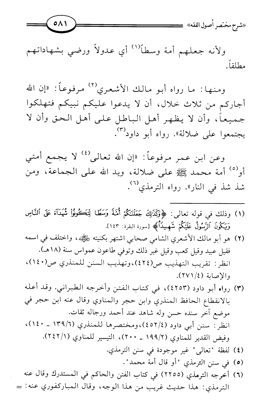 (¬1) وذلك في قوله تعالى: {وَكَذَلِكَ جَعَلْنَاكُمْ أُمَّةً وَسَطًا لِتَكُونُوا شُهَدَاءَ عَلَى النَّاسِ وَيَكُونَ الرَّسُولُ عَلَيْكُمْ شَهِيدًا} [البقرة: 143].