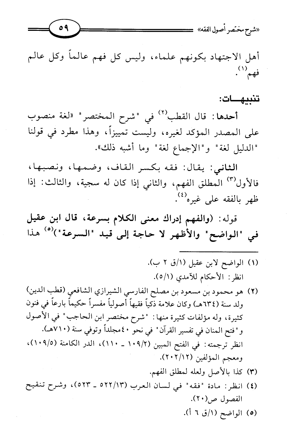 (¬4) انظر: مادة "فقه" في لسان العرب (13/ 522 - 523)، وشرح تنقيح الفصول ص (20).