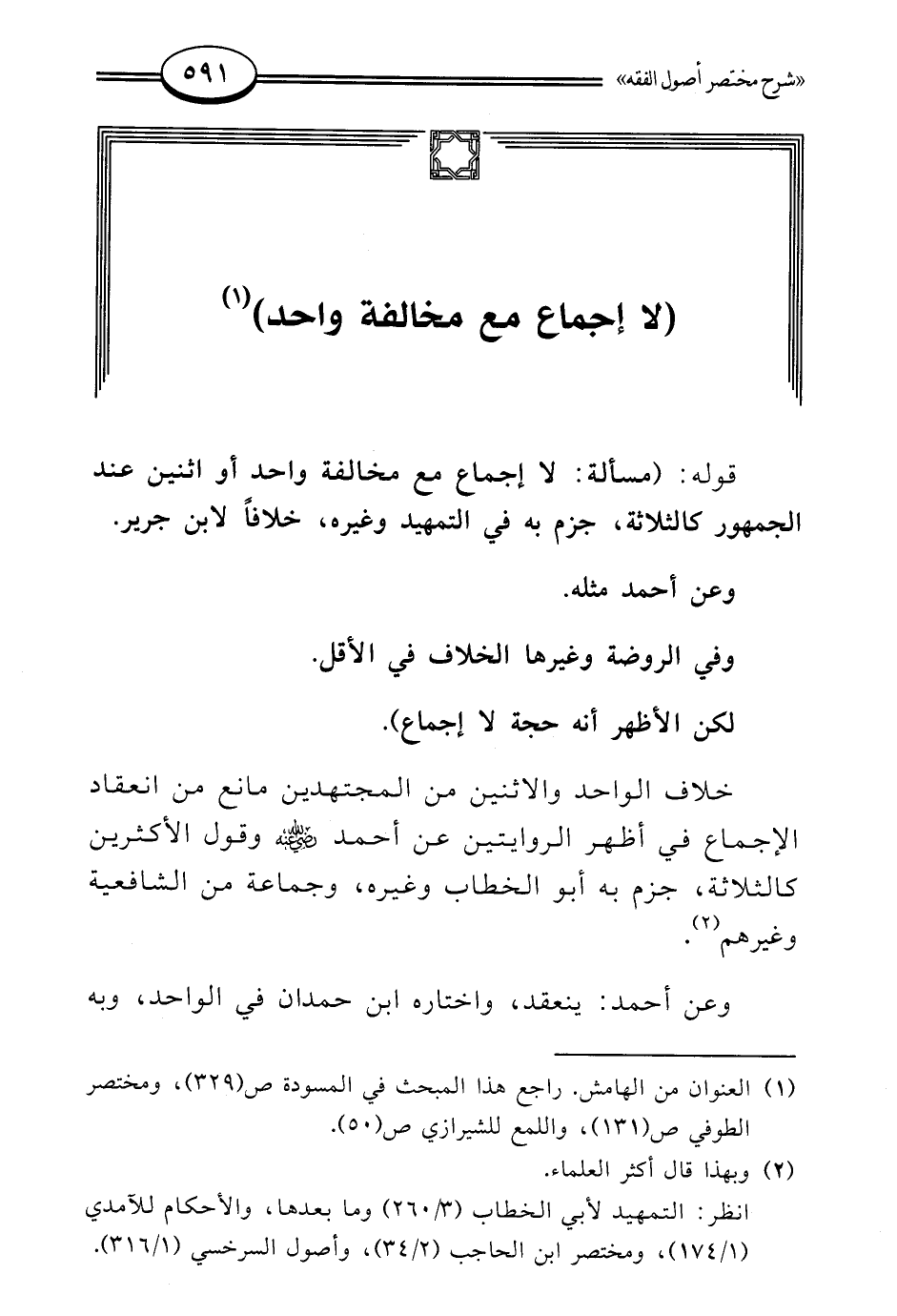 (¬1) العنوان من الهامش. راجع هذا المبحث في المسودة ص (329)، ومختصر الطوفي ص (131)، واللمع للشيرازي ص (50).