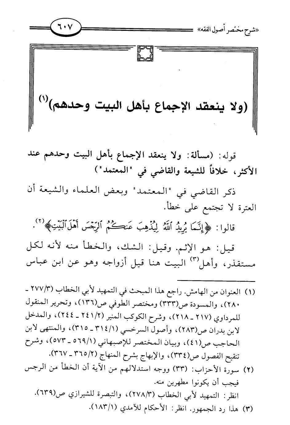 (¬2) سورة الأحزاب: (33) ووجه استدلالهم من الآية أن الخطأ من الرجس فيجب أن يكونوا مطهرين منه.