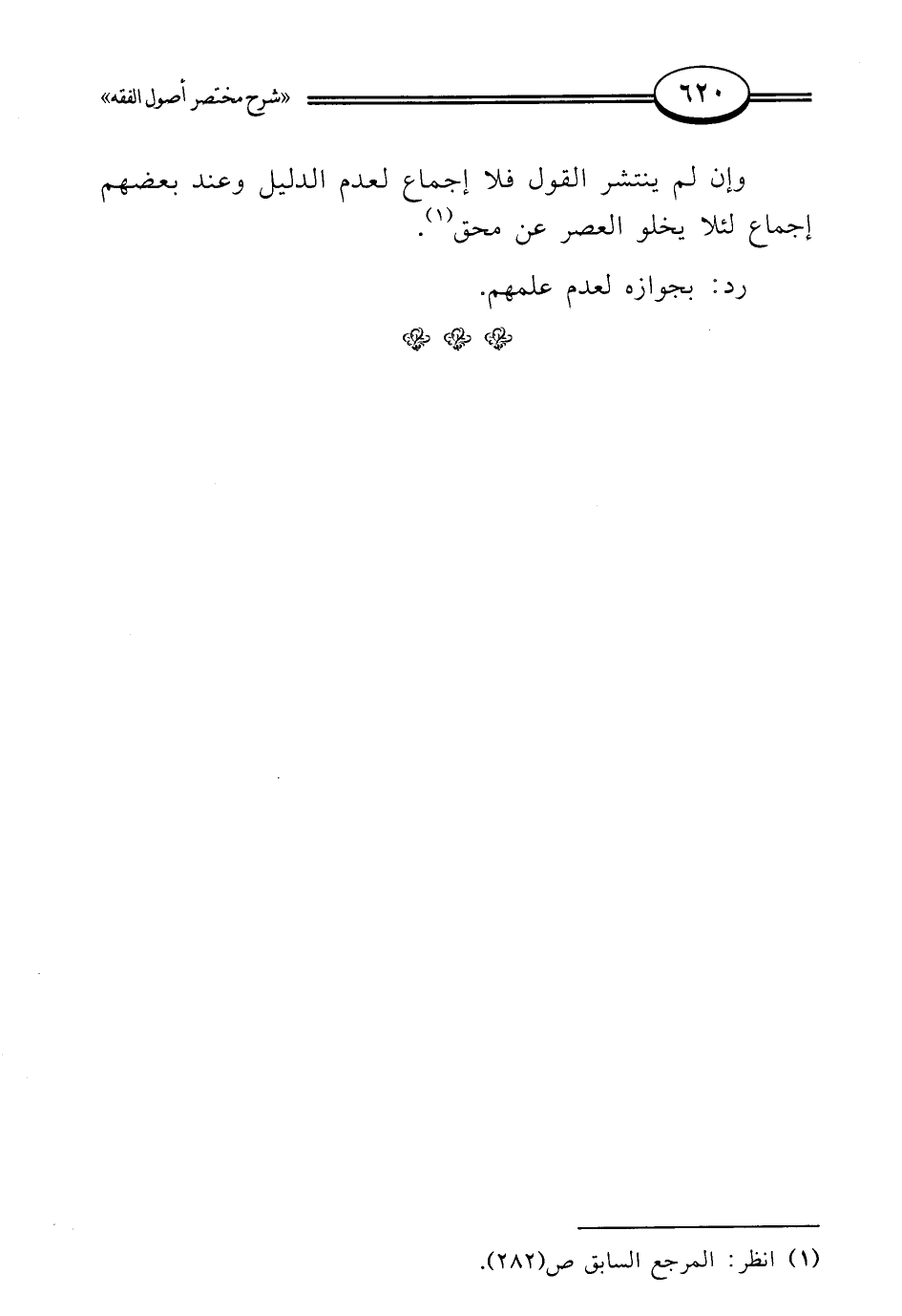وإن لم ينتشر القول فلا إجماع لعدم الدليل وعند بعضهم إجماع لئلا يخلو العصر عن محق (¬1).