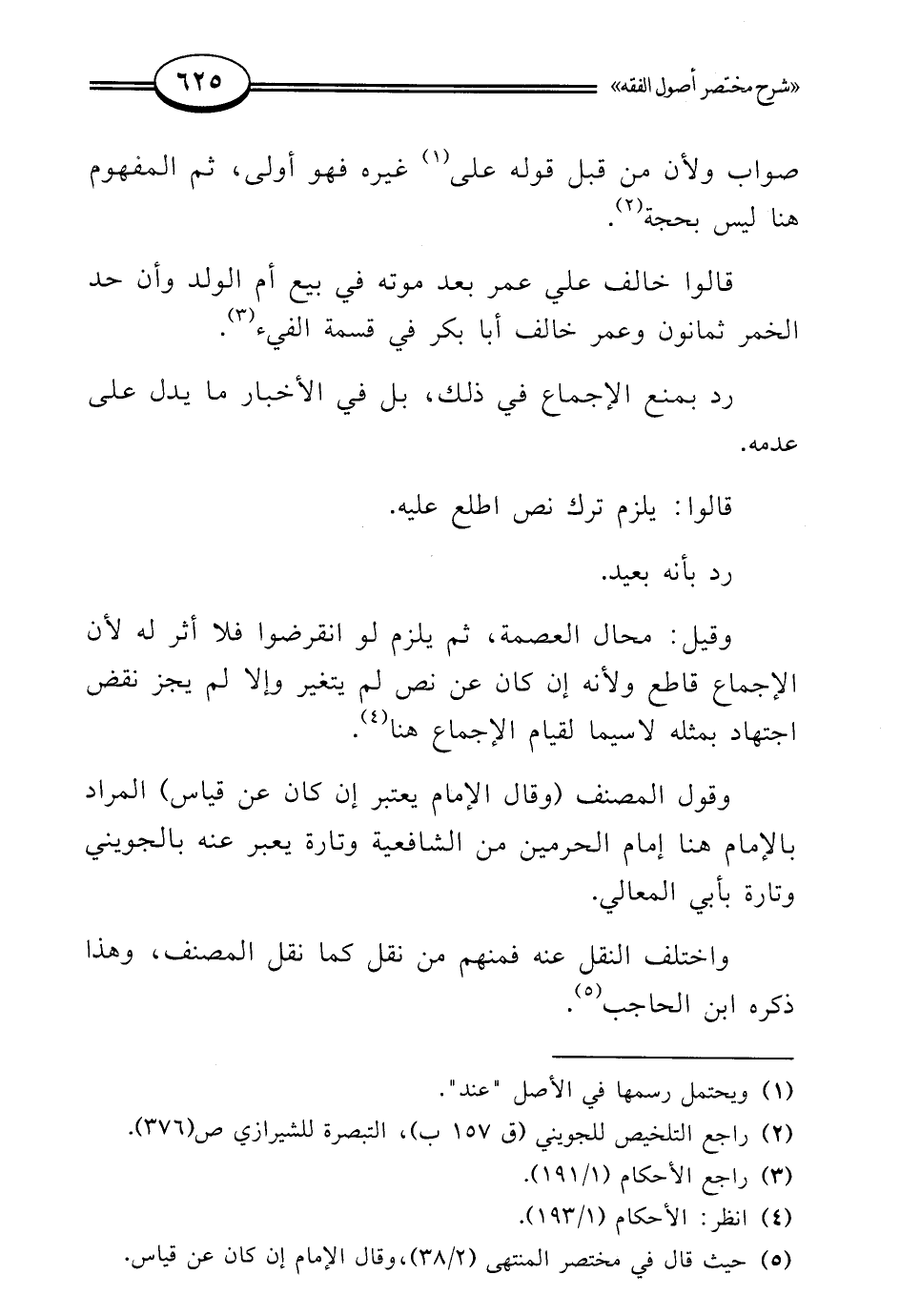 (¬2) راجع التلخيص للجويني (ق 157 ب)، التبصرة للشيرازي ص (376).