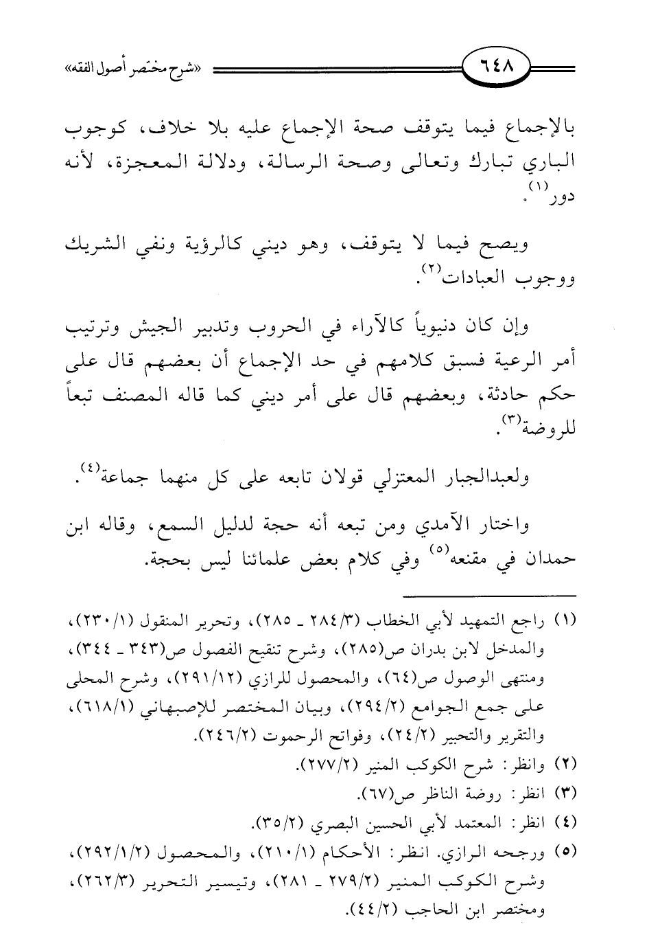 (¬1) راجع التمهيد لأبي الخطاب (3/ 284 - 285)، وتحرير المنقول (1/ 230)، والمدخل لابن بدران ص (285)، وشرح تنقيح الفصول ص (343 - 344)، ومنتهى الوصول ص (64)، والمحصول للرازي (12/ 291)، وشرح المحلى على جمع الجوامع (2/ 294)، وبيان المختصر للأصبهاني (1/ 618)، والتقرير والتحبير (2/ 24)، وفواتح الرحموت (2/ 246).