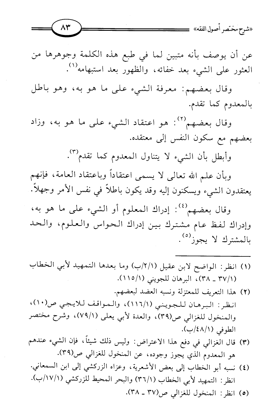 (¬1) انظر: الواضح لابن عقيل (1/ 2/ ب) وما بعدها التمهيد لأبي الخطاب (1/ 37 - 38)، البرهان للجويني (1/ 115).